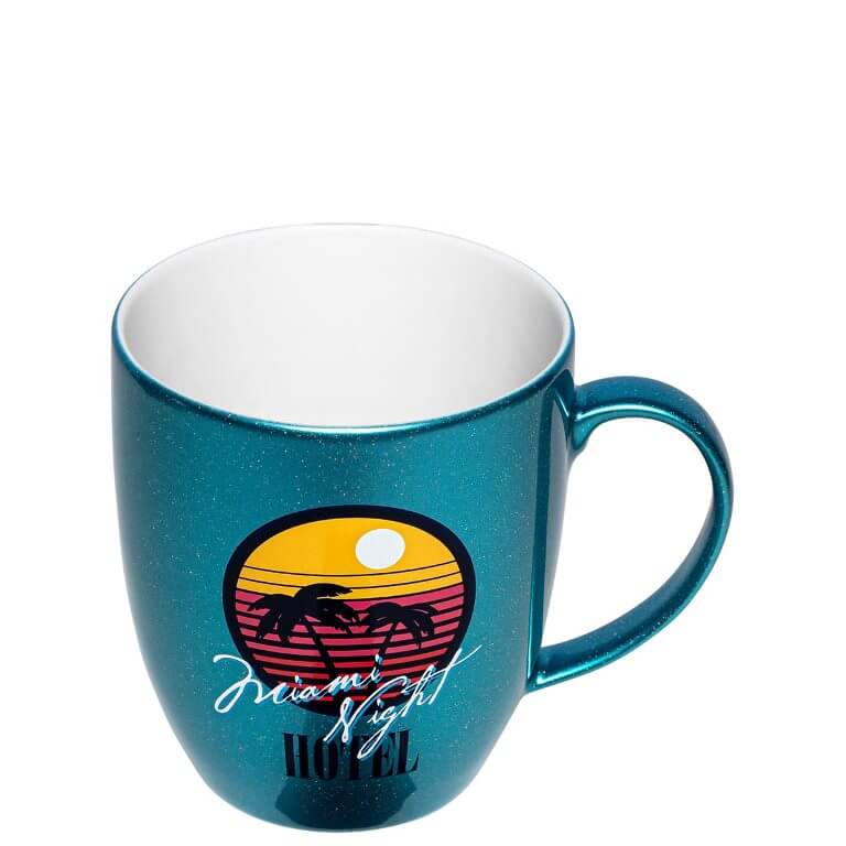 Keine Linien unter 1-Punkt Strichstärke. Geometrische Formen wirken auf runden und gewölbten Tassen und Bechern ggf. verzerrt. Kein Raster unter 15% Deckung. Kein Magenta und Cyan im klassischen Auf- oder Inglasurdruck. Andruckmuster erforderlich.