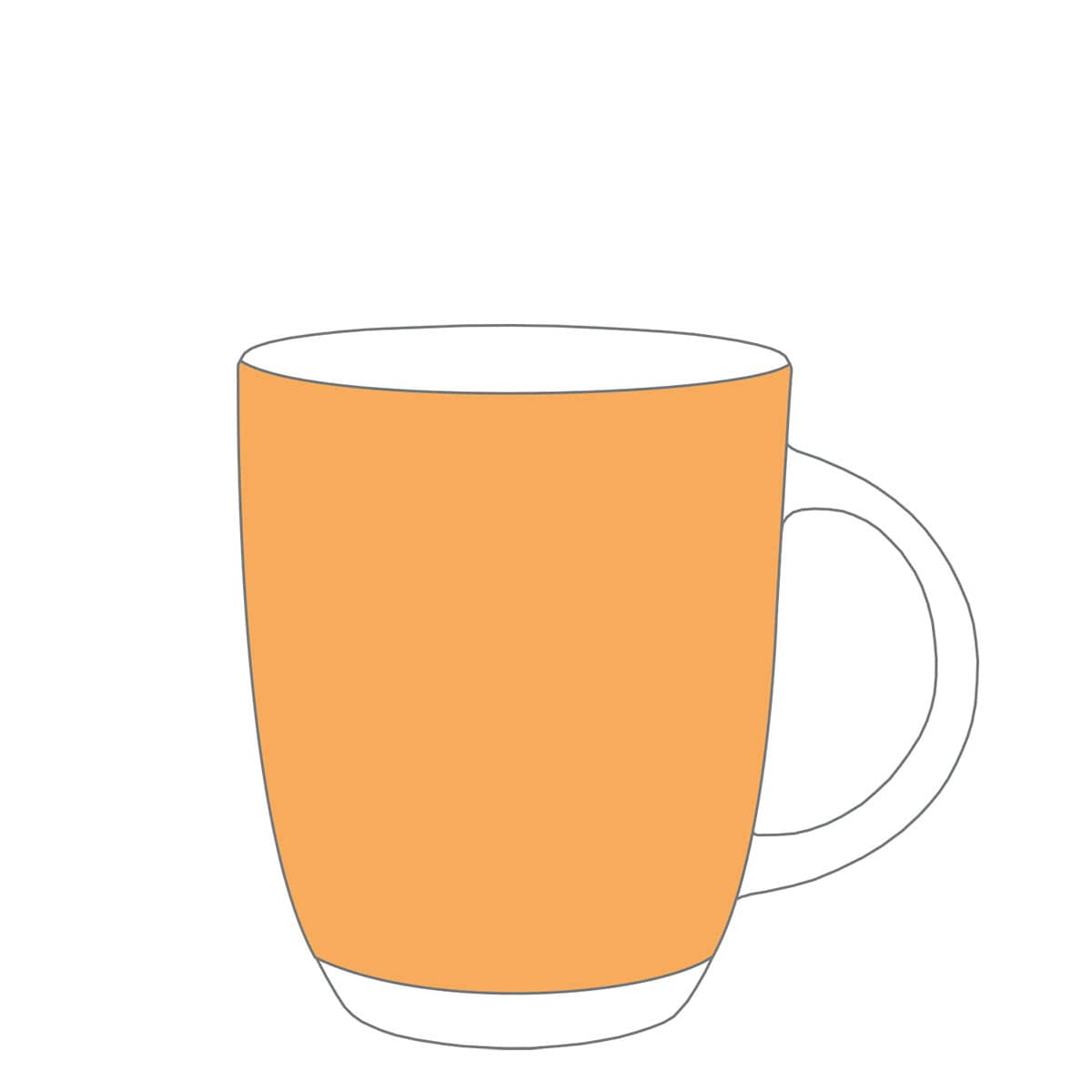 Keine Linien unter 1-Punkt Strichstärke. Geometrische Formen wirken auf runden und gewölbten Tassen und Bechern ggf. verzerrt. Kein Raster unter 15% Deckung. Kein Magenta und Cyan im klassischen Auf- oder Inglasurdruck. Andruckmuster erforderlich.