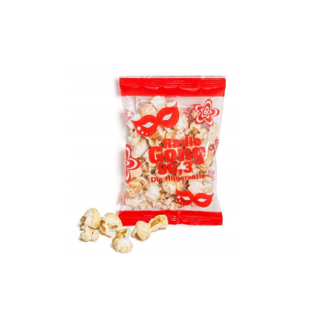BonbonglasLeckeres, süßes Popcorn verpackt im individuell bedruckten Werbetütchen. Inhalt: Süßes Popcorn ca. 10 g, GVO frei; Folie: weiß oder transparent